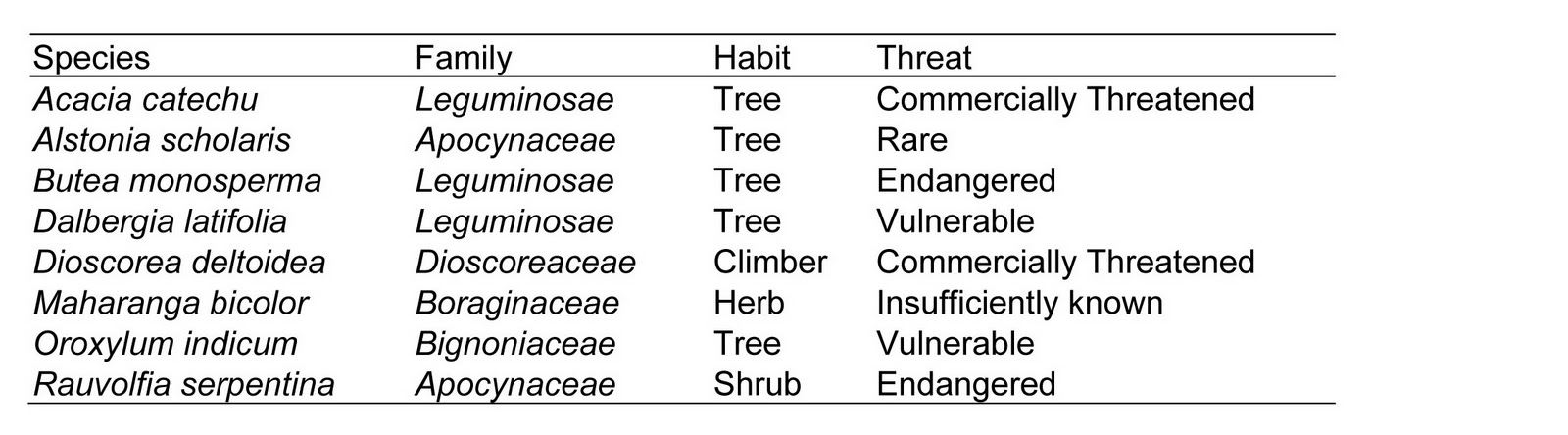 Plant species under various IUCN threat categories: